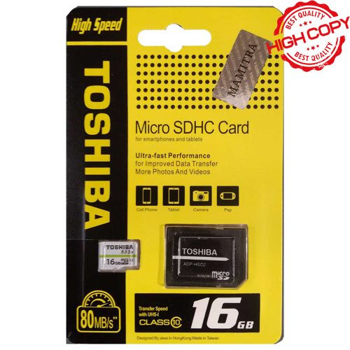 رم 16 گیگ Micro SDHC توشیبا Toshiba مدل ADP-HS02 533X کلاس 10 و سرعت 80MB/s با گارانتی مادام العمر